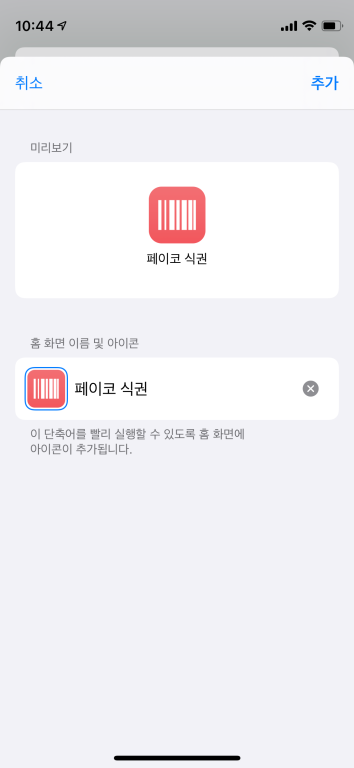iOS 단축어로 페이코 식권 바로 열기 (위젯 대체하기)