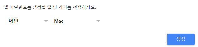 2. 앱 비밀번호 를 생성 합니다.